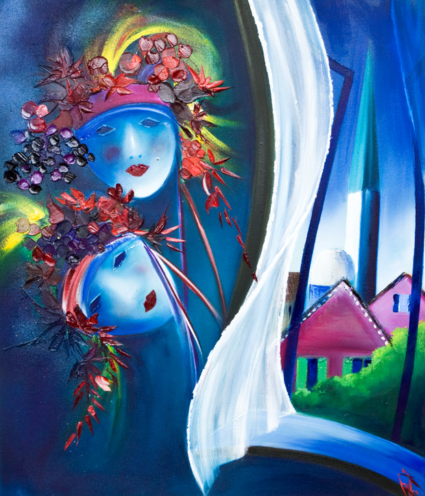 A painting from the Venetian Mask Festival, a remarkable festival held every year in Venice with the most spectacular masks and dressing up I have ever seen. It also represents for me our dark side many of us do not want to see.
